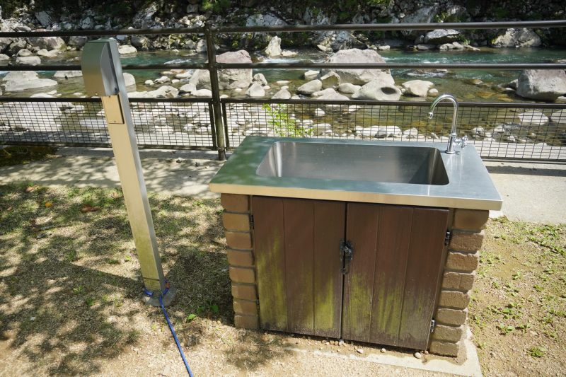 個別シンク、AC電源も付いているので、エアコンも使えて暑さもしのげます。