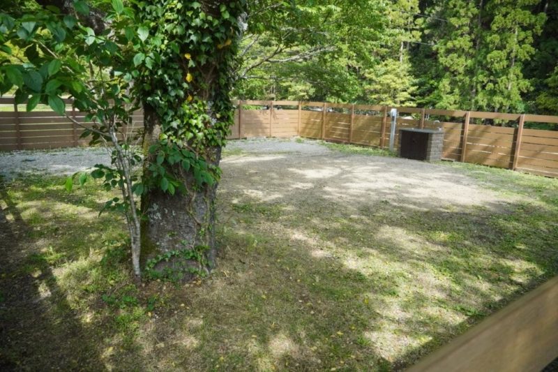 手前のAサイト。サイト内に大きな木があり、日陰ができます。夏はいいかも。