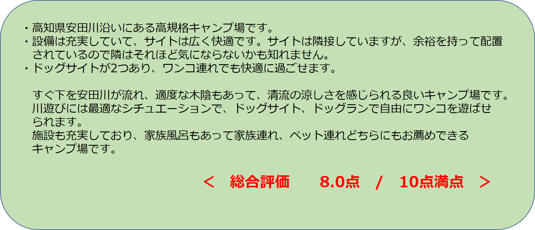 キャンプ場レポート第29弾は高知県の「安田川アユおどる清流キャンプ場」です。